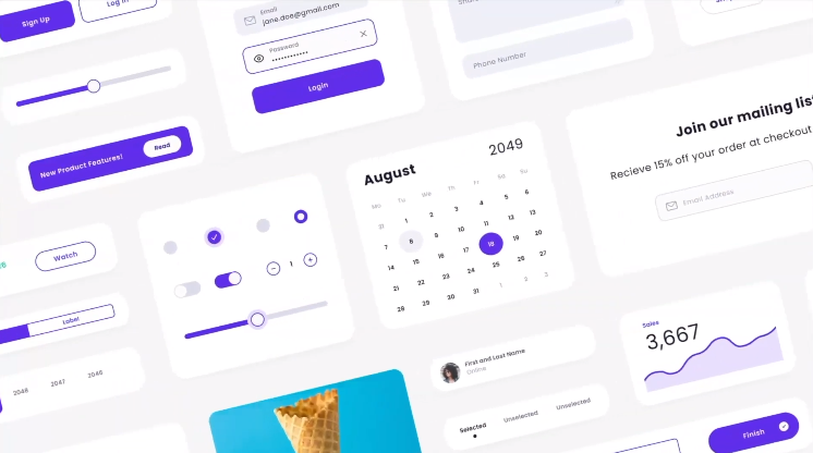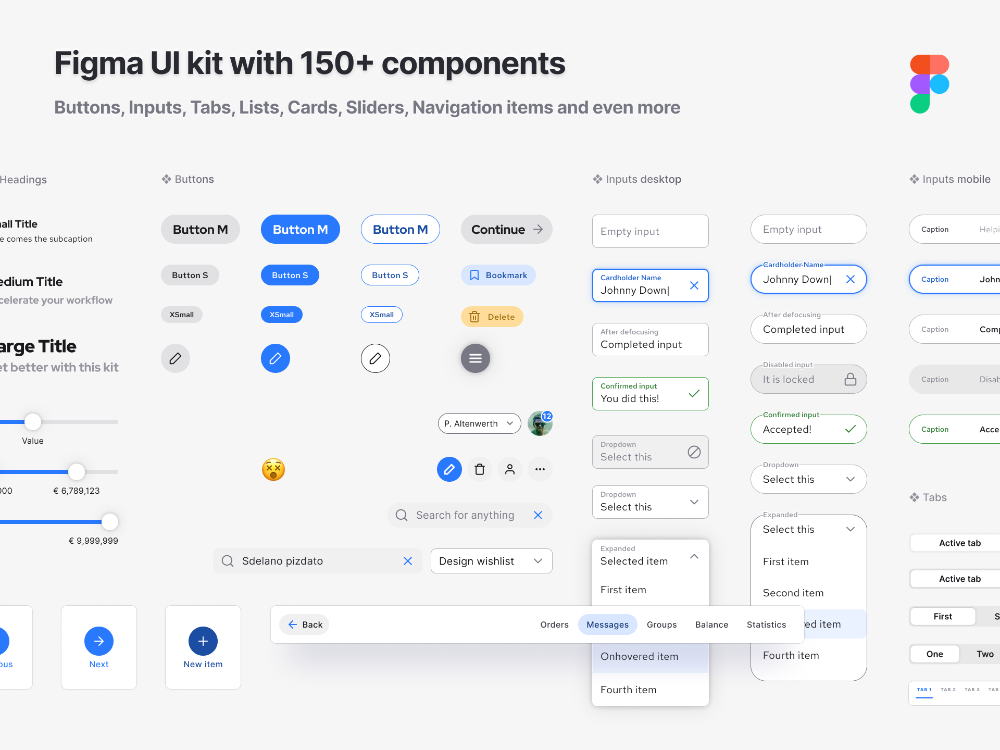 Π UI Kit Π΅ΡΡΡ Π²ΡΠ΅, ΡΡΠΎ Π½ΡΠΆΠ½ΠΎ Π΄Π»Ρ ΡΠΎΠ·Π΄Π°Π½ΠΈΡ ΠΈΠ½ΡΠ΅ΡΡΠ΅ΠΉΡΠ°: ΠΊΠ½ΠΎΠΏΠΊΠΈ, Π²ΠΈΠ΄ΠΆΠ΅ΡΡ, ΡΠ΅ΠΊΠ±ΠΎΠΊΡΡ, ΠΏΡΠΎΠ³ΡΠ΅ΡΡ Π±Π°ΡΡ ΠΈ ΠΏΠ°Π½Π΅Π»ΠΈ Π½Π°Π²ΠΈΠ³Π°ΡΠΈΠΈ. ΠΠ°ΠΆΠ΄ΡΠΉ ΡΠ»Π΅ΠΌΠ΅Π½Ρ UI-ΠΊΠΈΡΠ° ΠΏΡΠΎΡΠ°Π±ΠΎΡΠ°Π½ Π²ΠΎ Π²ΡΠ΅Ρ Π½ΡΠ°Π½ΡΠ°Ρ ΠΏΠΎ ΠΊΠΎΠ½ΡΠ΅ΠΏΡΠΈΠΈ Β«Π±Π΅ΡΠΈ ΠΈ Π²Π½Π΅Π΄ΡΡΠΉΒ».Β