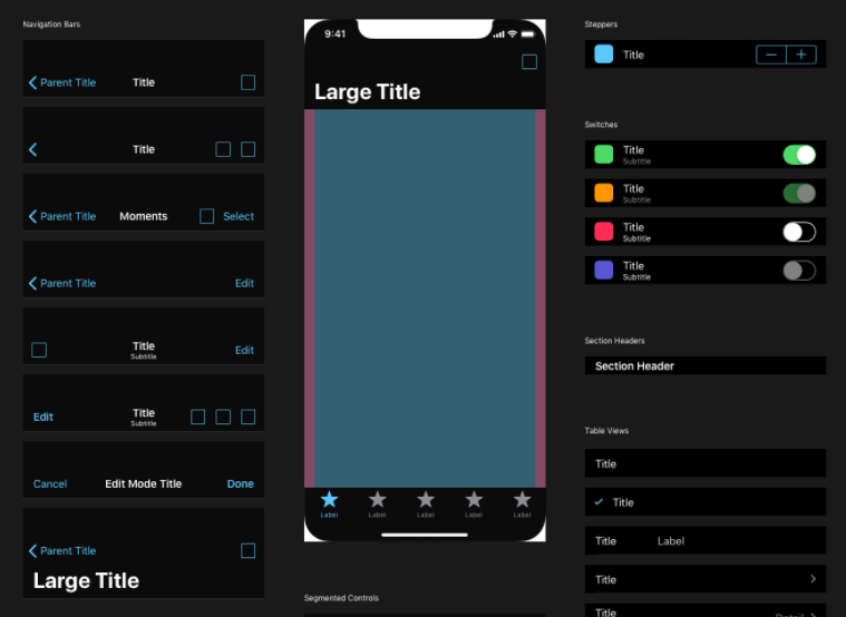 UI-ΠΊΠΈΡΡDesign+Code iOS 11 UI Kit β Β Sketch-Π½Π°Π±ΠΎΡ, ΠΊΠΎΡΠΎΡΡΠΉ ΡΠΎΠ΄Π΅ΡΠΆΠΈΡ ΡΡΠΈΠ»ΠΈ ΡΠ΅ΠΊΡΡΠΎΠ², Π²Π»ΠΎΠΆΠ΅Π½Π½ΡΠ΅ ΡΠΈΠΌΠ²ΠΎΠ»Ρ Ρ ΠΈΠ·ΠΌΠ΅Π½ΡΠ΅ΠΌΡΠΌΠΈ ΡΠ°Π·ΠΌΠ΅ΡΠ°ΠΌΠΈ ΠΈ Π½Π°Π±ΠΎΡ ΠΊΠΎΠΌΠΏΠΎΠ½Π΅Π½ΡΠΎΠ² Π² ΡΠ΅ΠΌΠ½ΠΎΠΉ ΡΠ΅ΠΌΠ΅. ΠΠ°Π·Π²Π°Π½ΠΈΠ΅ ΠΊΠ°ΠΆΠ΄ΠΎΠ³ΠΎ ΠΊΠΎΠΌΠΏΠΎΠ½Π΅Π½ΡΠ° ΡΠΎΠΎΡΠ²Π΅ΡΡΡΠ²ΡΠ΅Ρ Π΄ΠΎΠΊΡΠΌΠ΅Π½ΡΠ°ΡΠΈΠΈ Apple.