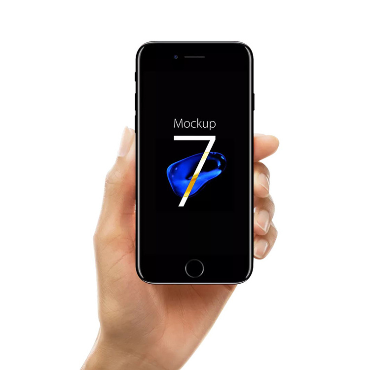 Белый iPhone 7 с держащим в руке макетом бесплатно Psd — Скачать