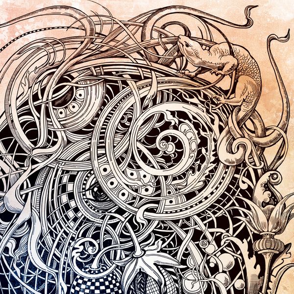 Стремясь добиться бесконечного количества естественных деталей на каждом холсте, эта коллекция произведений искусства черпает свою сложность из иллюстраций к геральдическим щитам и гравюр к алхимическим трактатам.