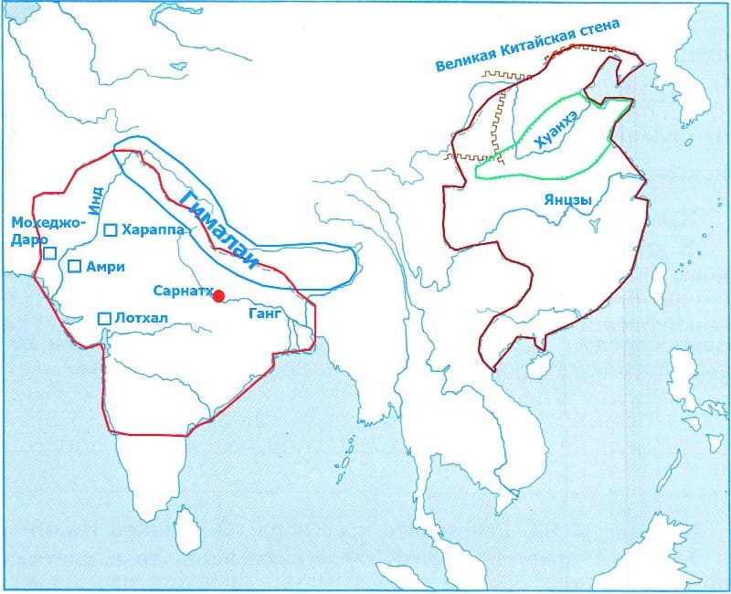 А другая страна со всех сторон окружена морями. Значит, здесь были хорошо развиты мореходство и торговля.