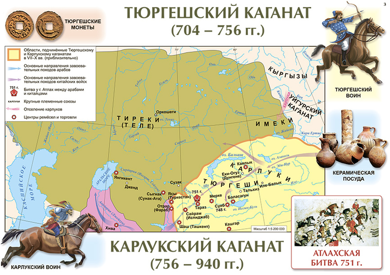3) условными знаками показаны перемещения войск (стрелки), места сражений (скрещённые мечи), завоёванные территории (штриховка). Бывают также изображены кораблики, пушки, солдатики и много других предметов, которых вы не встретите на географической карте;