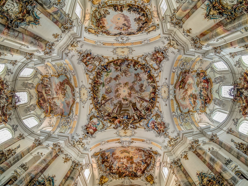 К 1600 году на трех известных картинах, иллюстрирующих жизнь святого Матфея, Караваджо сделал свет, представленный на каждой картине, соответствующим фактическому освещению часовни, где должны были висеть картины. В 1640-х и 1650-х годах Пьетро да Кортона украсил своды Санта-Мария-ин-Валличелла захватывающими изображениями Троицы во славе и Успения Богородицы, в которых монументальные группы фигур, видимые снизу, изображают небесные события, как если бы они происходили в поле зрения зрителя. собственный опыт. Потолочные фрески Пьетро стали эталоном для многих более поздних шедевров, в том числе для «Сияющей Триумф имени Иисуса (1676–79) в Иль-Джезу, главной церкви ордена иезуитов, расписанная Джованни Баттиста Гаулли, и Слава святого Игнатия Андреа Поццо (1691–94) в церкви Сант. Игнацио, где потолок, кажется, открывается, чтобы показать святого, возносящегося на небеса над парящим собранием ангелов и олицетворений.