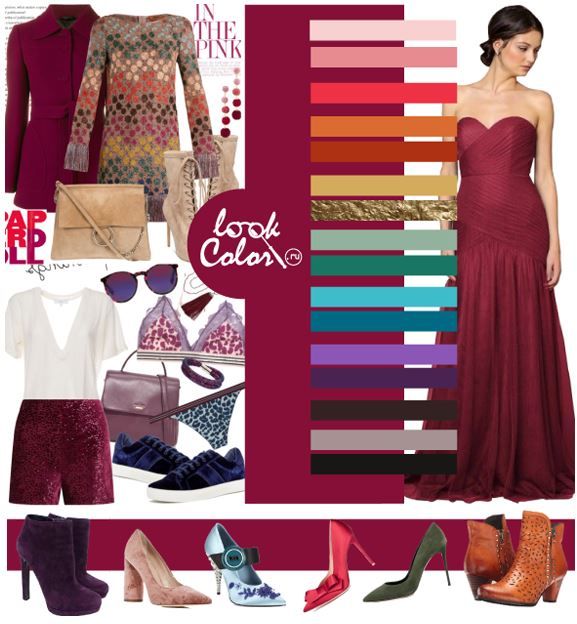 Нежные ноты, такие как виноградный, сиреневый, фиалковый и красно-фиолетовый создадут ультрамодный лук; - Total look – придаст образу глубину сочетание бордового, кармина и темных расцветок с основным неразбавленным тоном.