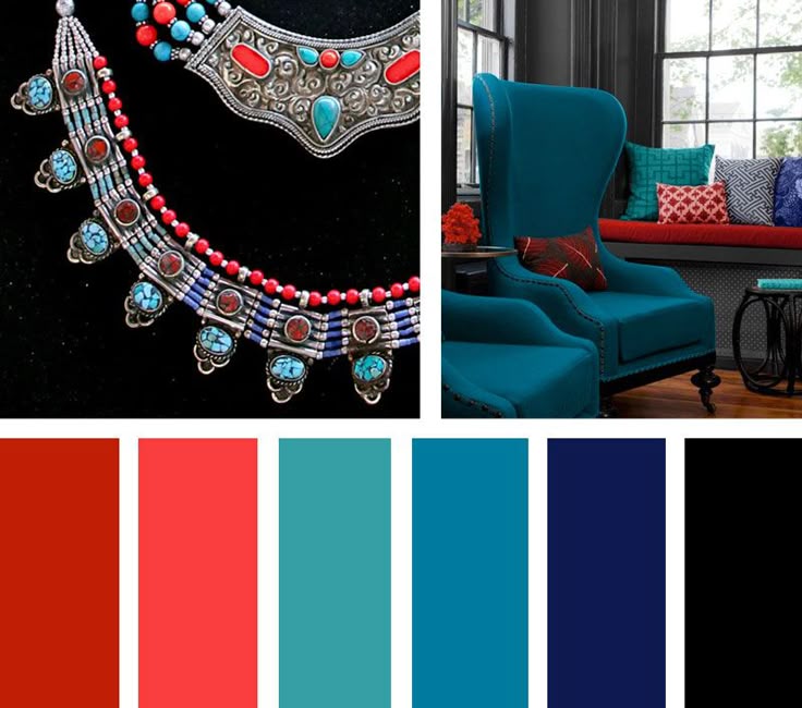 Если вы хотите создать смелый образ, сочетание красного и бирюзового цветов может вам подойти. Эти два оттенка сами по себе очень громкие, а когда вы соедините их вместе, вы можете создать веселую яркую комнату, полную жизни.