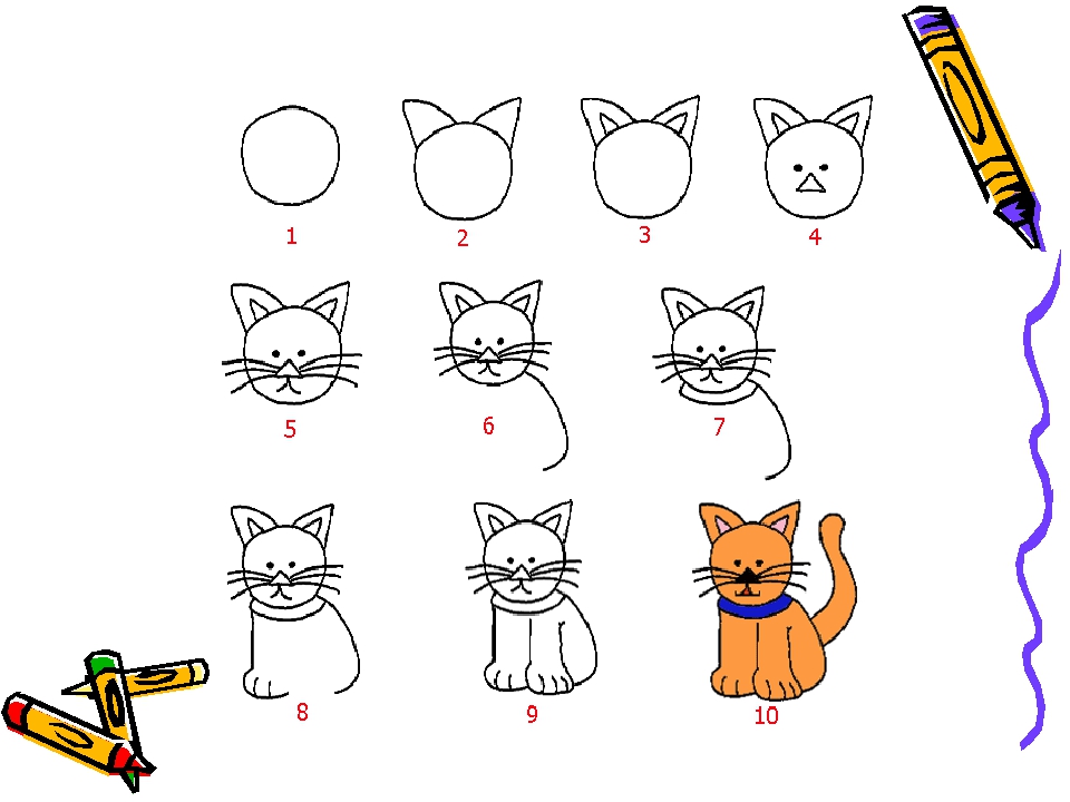 Для ребенка может оказаться сложной схема с разделением на равные части, просчетом пропорций и рисованием осей. Поэтому можно использовать более легкую версию, пожертвовав реалистичностью полученной картинки.