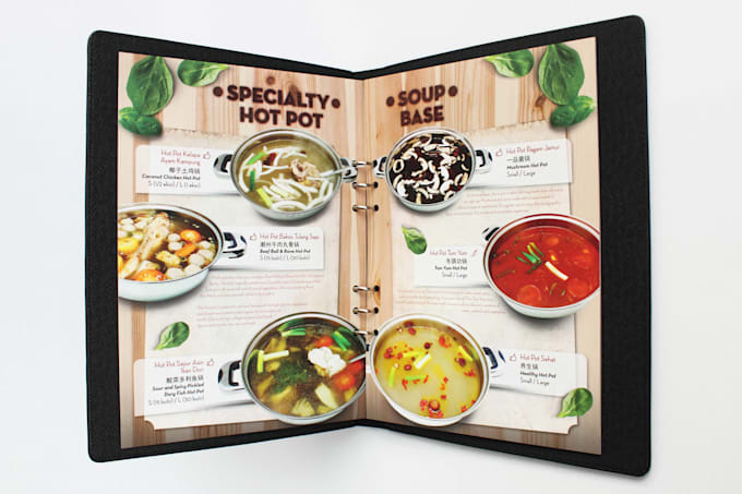 Они должны гармонично вписываться в дизайн, в том числе с описаниями и названиями блюд. При этом необходимо правильно распределить пространство, чтобы не было ощущения перегруженности.
