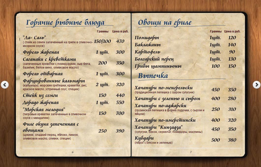 Такой формат подойдет для любого заведения, где есть достаточно большой перечень позиций. В этом случае необходимо сделать его удобным, чтобы посетители легко нашли нужный раздел. Требует и особенного внимания к дизайну, который позволит показать блюда и будет соответствовать уровню заведения.