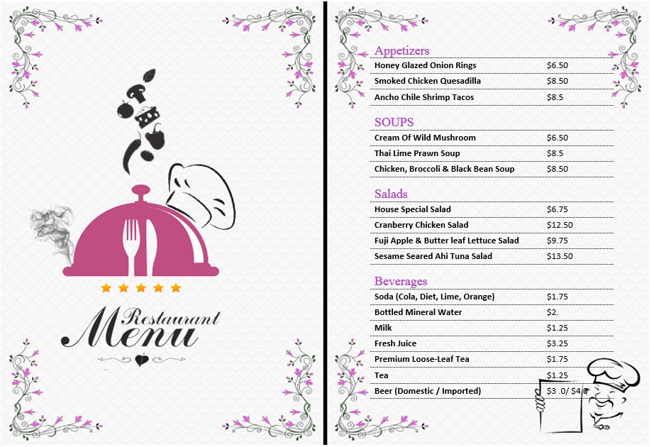 Меню ресторана — его самый большой магнит. Чтобы создать группу лояльных посетителей, ресторанам необходимо создать уникальное меню по разумной цене, которое предлагает свежие и надежные варианты еды и напитков.