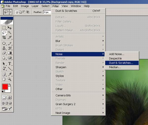 2) «Фильтр»→«Шум»→«Добавить Шум».