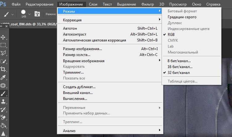 - Нажмите «Изображение» в меню Photoshop.