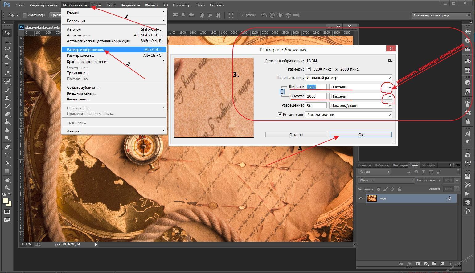 Как изменить разрешение изображения в Photoshop