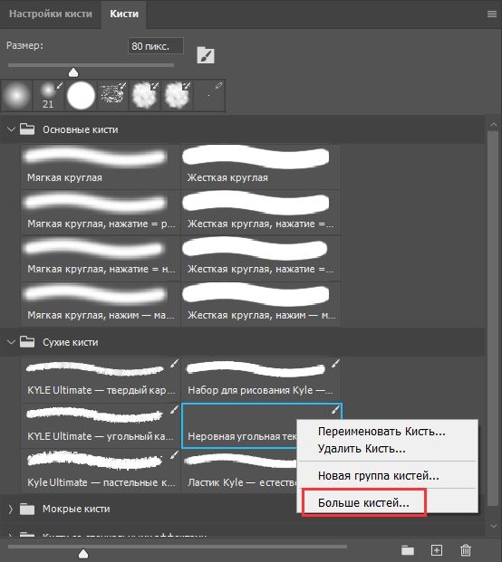 - Нажмите «импортировать кисти», перейдите туда, где вы сохранили файл .abr, и выберите файл.