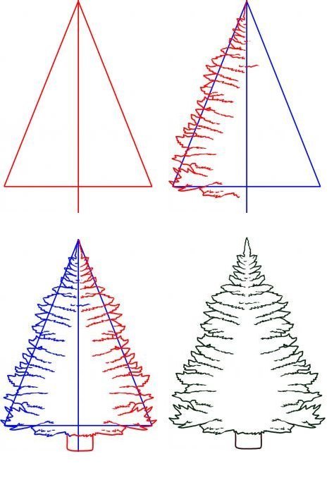 После того, как контур будет нарисован, вы можете аккуратно стереть набросанные фигуры, составляющие каркас дерева, или оставить их для справки до конца.