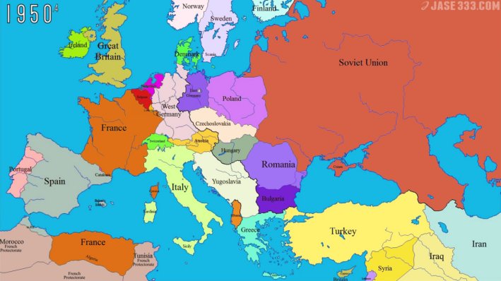 Видео, созданное LiveLeak, показывает карту границ Европы, меняющую цвет и расположение в соответствии с геополитическими событиями на континенте с 1000 года до 2003 года. мысль: Тот факт, что Германии на самом деле не существовало до конца 1800-х годов, а затем внезапно захватила большую часть Северной Европы в течение нескольких десятилетий: