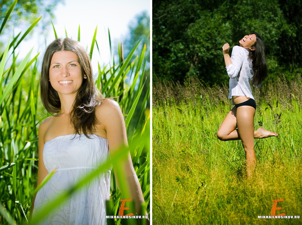 Фотограф может работать с естественным обильным светом, который не нужно выставлять, обыгрывать детали окружения, использовать для воплощения идеи любые декорации, от зеленого парка до мрачной стройки. Главное — активное участие модели и в подготовке, и в самом процессе. Она должна не только выполнять указания фотографа, но и задавать вопросы, и даже подбрасывать интересные решения.
