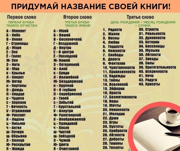 Важно: можно придумать несколько названий, придуманных разными способами, и сравнить их.