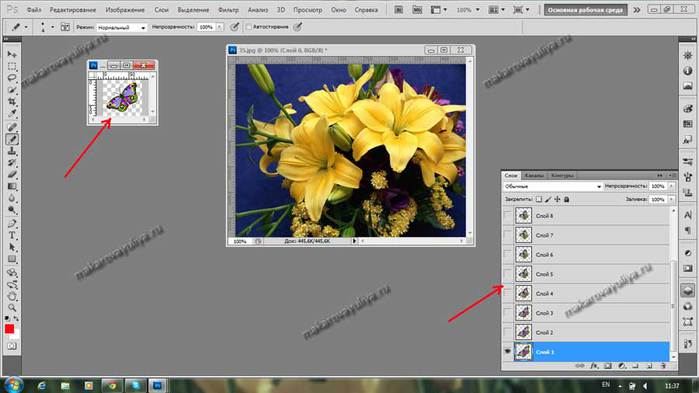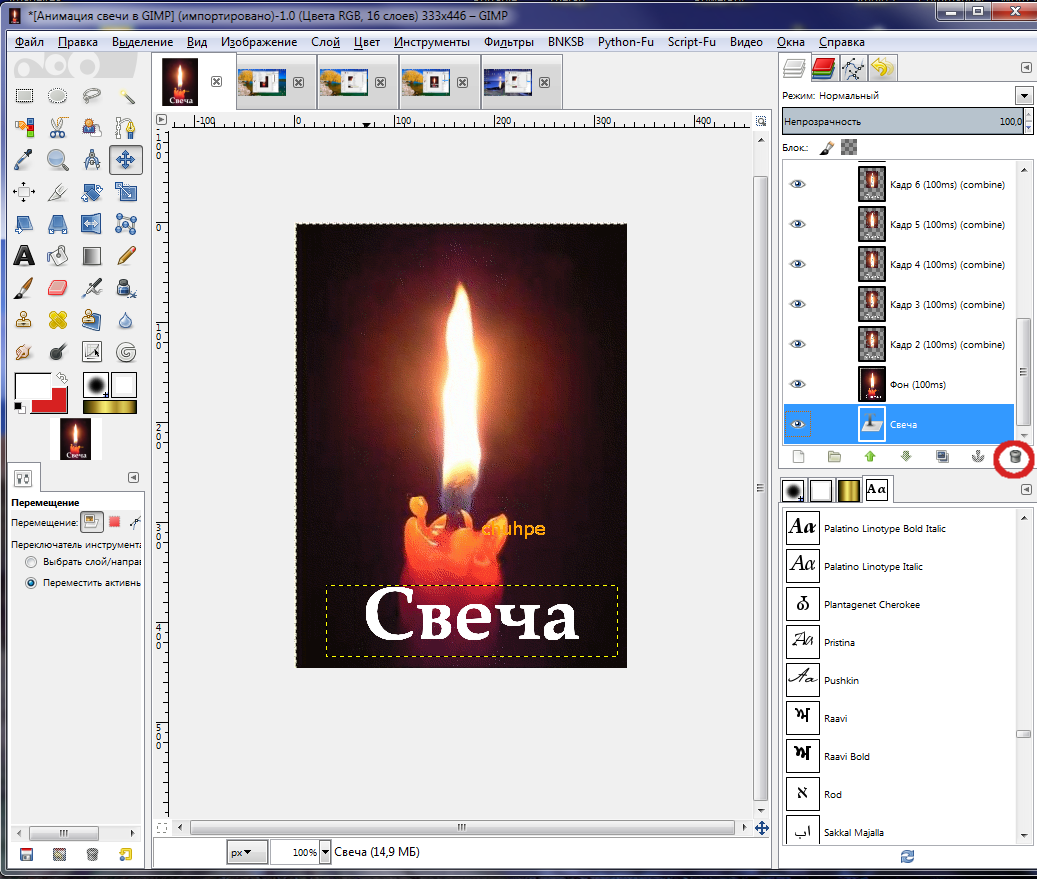 Картиночки анимашки, которые вы будете размещать на картинке — не двигаются и не уменьшаются, они просто замостятся, то есть рядами поместятся на фоне. И чтобы оставить одну или несколько в нужных местах, вам надо будет просто подтереть их инструментом «Стирательная резинка».
