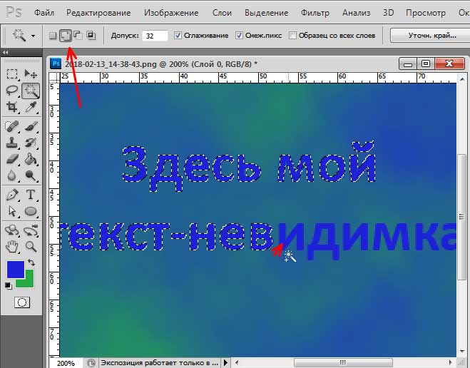 Если картинка или буквы являются частью целого изображения, их предварительно выделяют любым инструментом выделения.