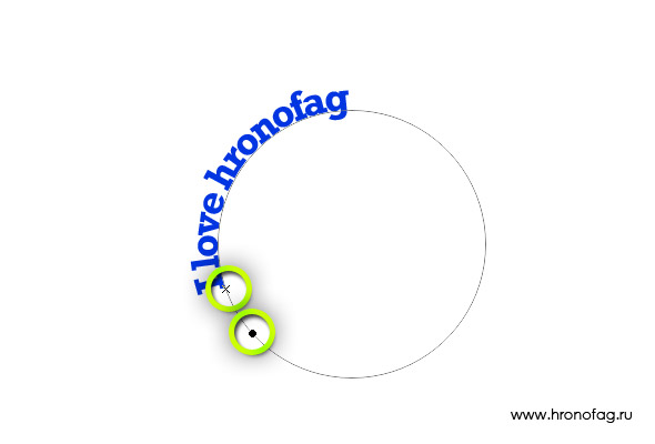 Перемещение желтого маркера позволит изменить, где будет начинаться и заканчиваться текст в полукруге.