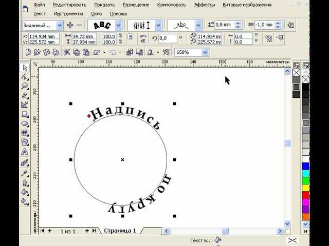 Этот же инструмент дает нам возможность вывести текст во внутреннюю часть окружности.