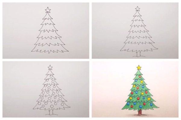 Пошаговая инструкция, как начинающему легко, быстро и красиво нарисовать карандашом новогоднюю елку