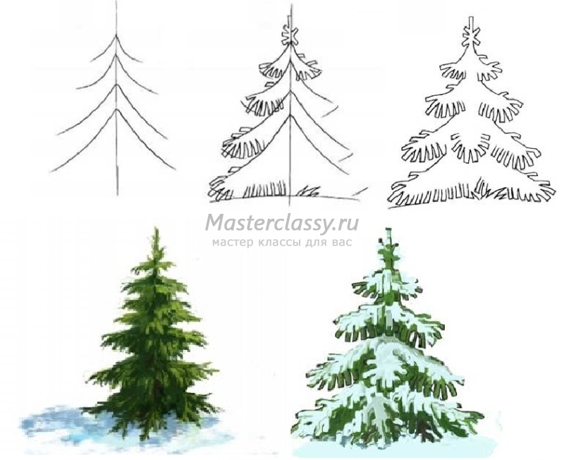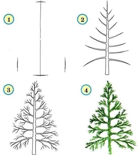 Реалистичная елочка — схема поэтапного рисования с детьми от 9 летлет.