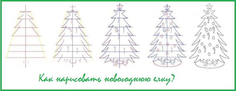 7. Как нарисовать елку поэтапно. Елка новогодняя рисунок