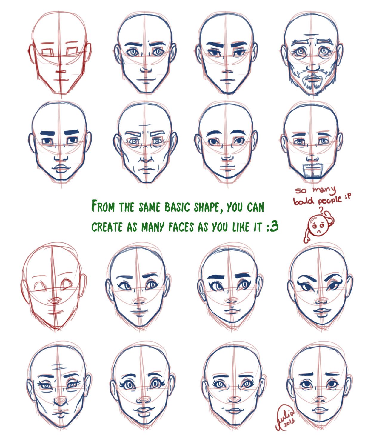Итак, на этот раз мы объясним, как нарисовать лицо анфас, глядя на структуру и соотношение частей лица.