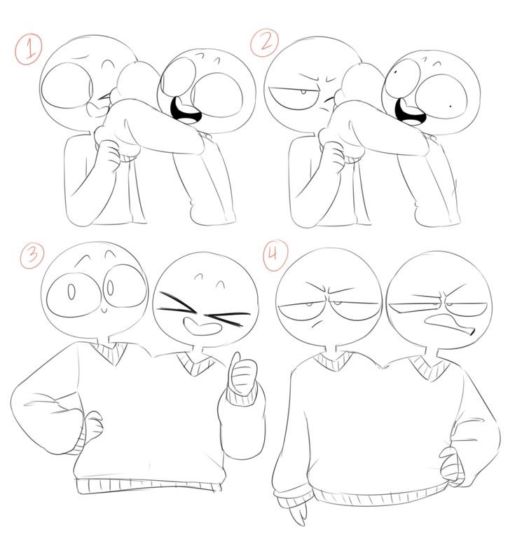 1. Изобразите небольшой кружок, а справа чуть выше — ещё один. Внутри каждого подрисуйте ещё по два маленьких кружочка. Проведите под ними плавную горизонтальную линию и закрасьте пространство над ней, оставив их белыми. Под линиями добавьте по две вертикальные чёрточки.