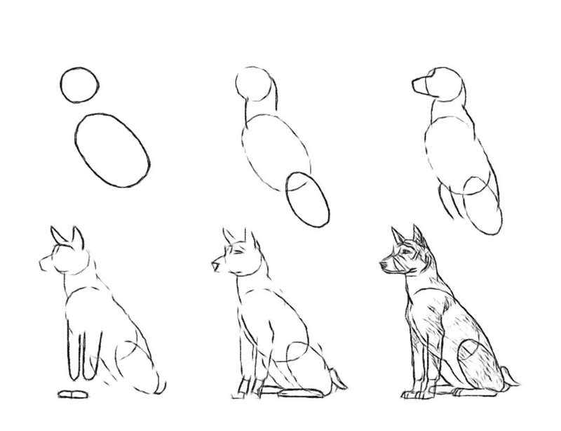 - Дорисуйте хвост. Сотрите вспомогательные линии.