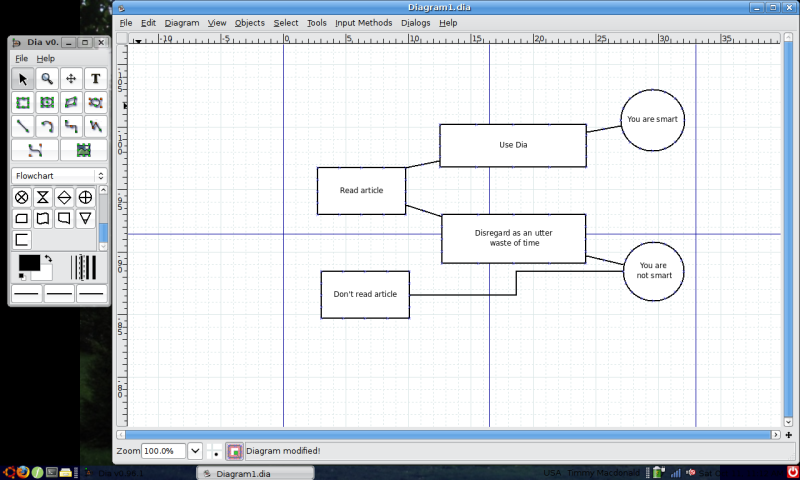 6. Продолжайте добавлять фигуры, пока все необходимые фигуры не будут на месте. Щелкните правой кнопкой мыши значок «Инструмент пользовательской формы» и выберите «Инструмент «Линия». При желании поменяйте цвет краски. Рисуйте линии от фигуры к фигуре, формируя дерево диаграммы, например иерархию блок-схемы. Отрегулируйте толщину линий, введя большее число в поле «Толщина» на панели инструментов в верхней части экрана.