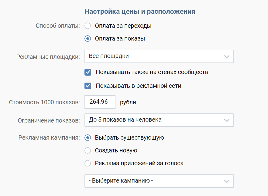 CPM – стоимость за 1000 показов. Когда вы выбираете способ оплаты “за показы”, эта сумма вычитается из вашего рекламного бюджета за каждые 1000 показов объявления.
