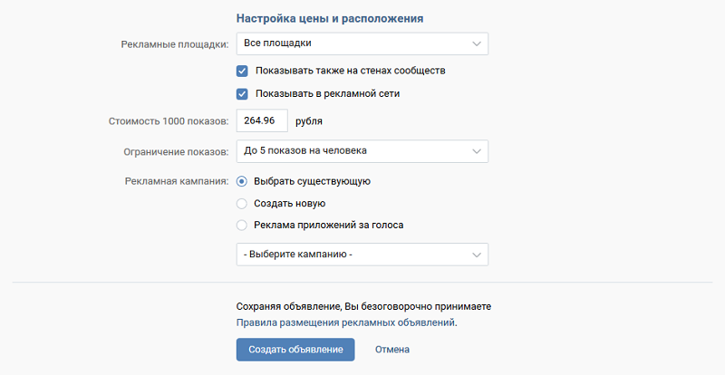 Такие объявления будут конкурировать за показы только с другими объявлениями данного формата. Рекламные объявления показываются в новостной ленте пользователя.
