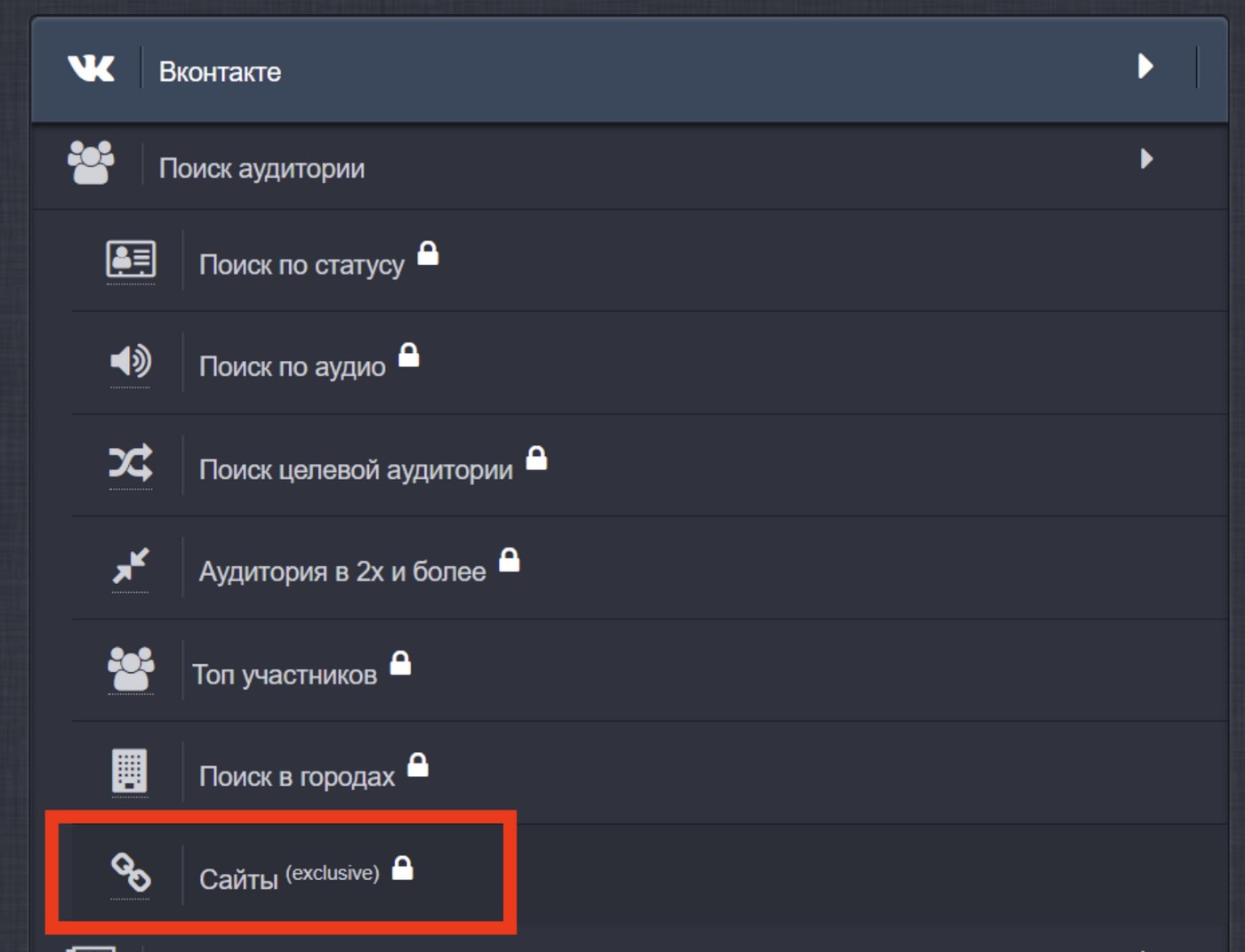Некоторые сайты позволяют авторизоваться через ВКонтакте. Это дает нам возможность показывать рекламу этим пользователям. Например, у вас интернет-магазин женской одежды, и вы хотите показывать рекламу пользователям, которые авторизировались у конкурентов. Как это настроить: