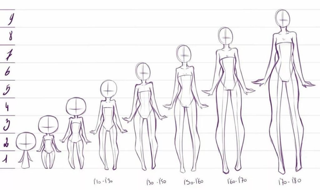 Важно! В возрасте 5-6 лет детям следует объяснить, что фигура будущего рисунка измеряется головой. В теле рисунка взрослых людей находится, примерно, восемь «голов». Благодаря этому пропорции будут соблюдены, а нарисованный человек, визуально похожим на живого.