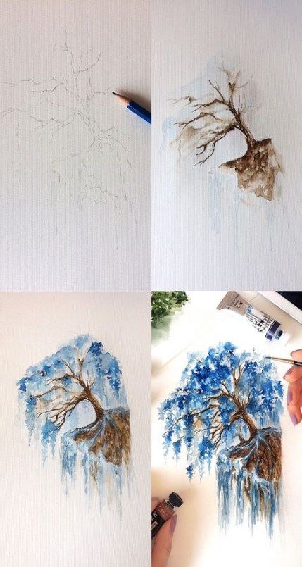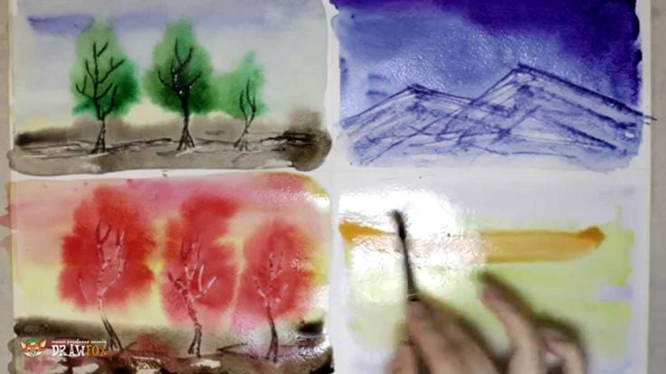 2. Красивые осенние деревья Осенние деревья — отличный объект, если вы хотите попрактиковаться в своих навыках акварели.