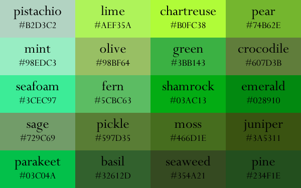 Про чистые и сложные оттенки зеленого