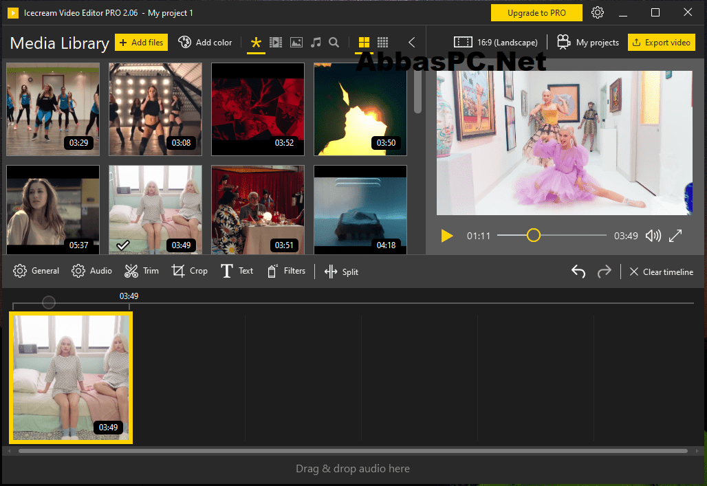 хотите обрезать, а затем перетащите видео на временную шкалу.