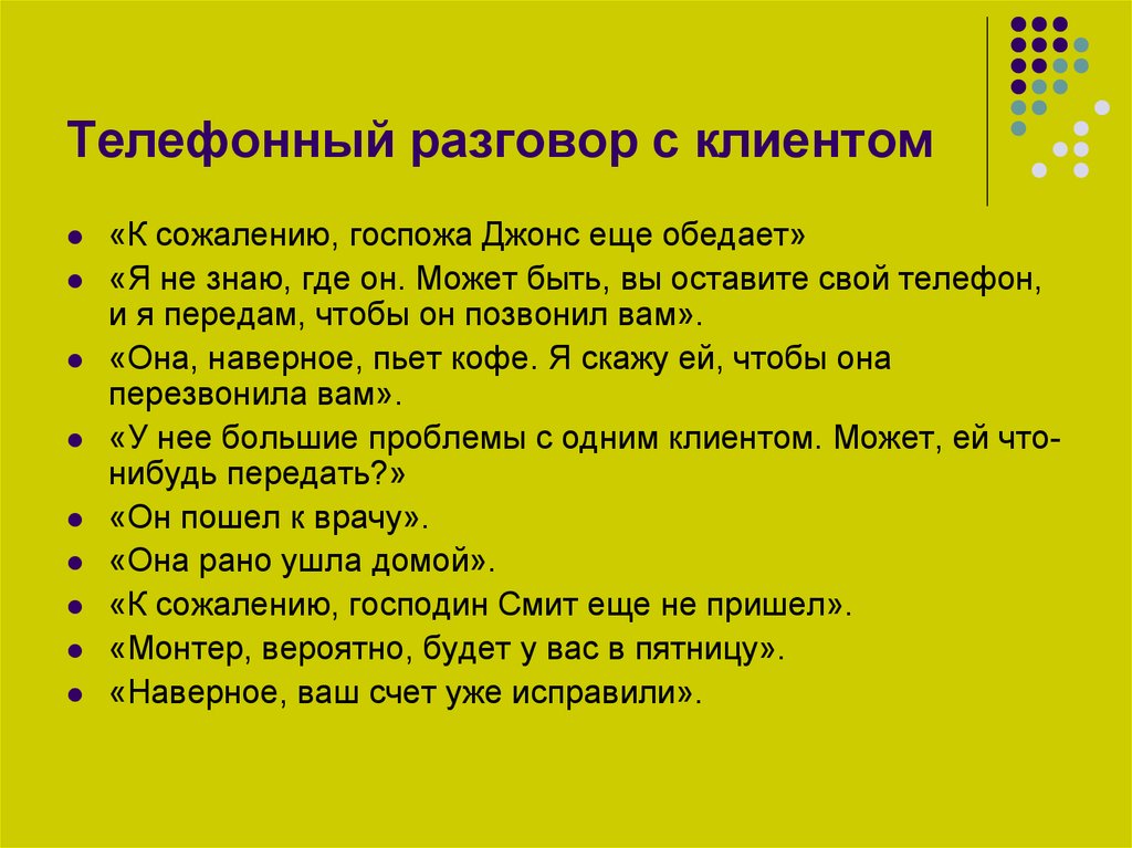 Точность украшает не только симфонии, но и телефонные переговоры. Во время звонка следуйте простой цепочке: