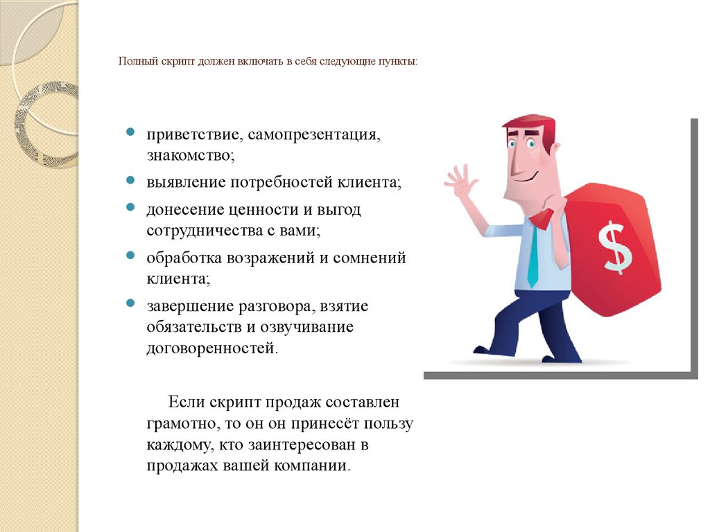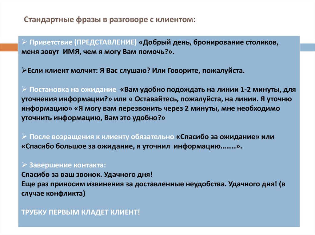 - не забывайте представиться, чтобы клиент понял, кто и по какой причине его беспокоит;