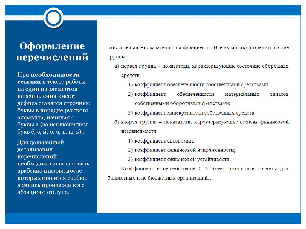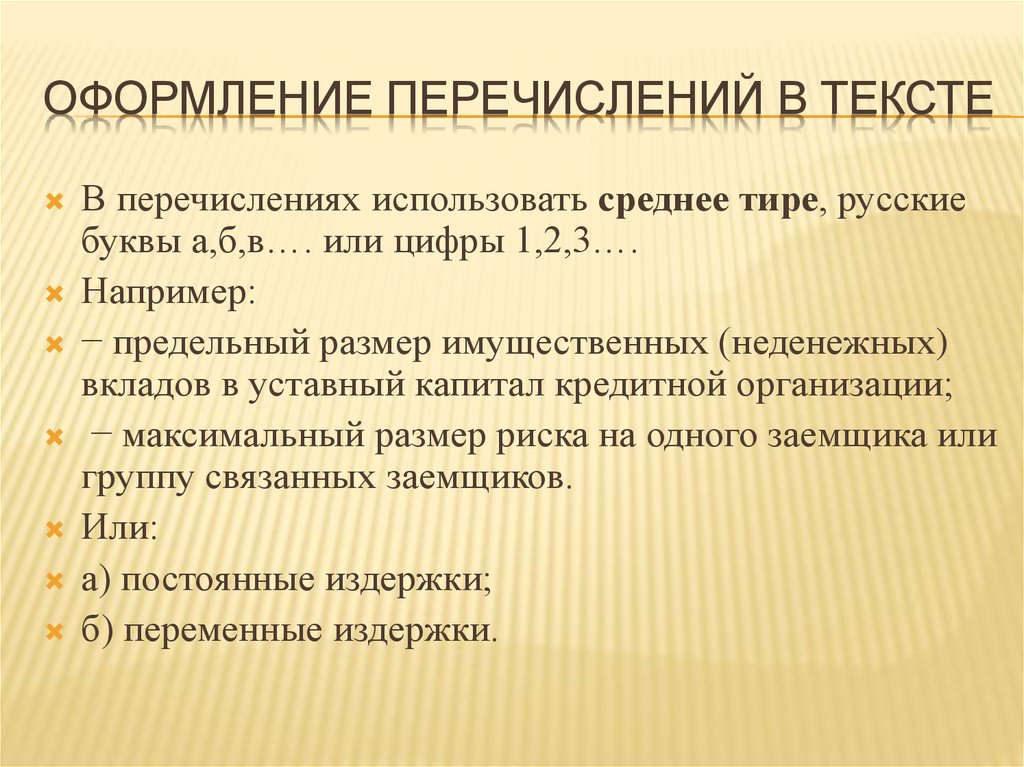 Правила оформления списков: