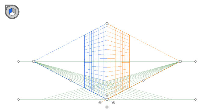 Теперь вы должны получить представление о том, как работает инструмент перспективы и что вы можете с ним делать. Я показал вам только пример 1-точечной перспективы, если вы хотите создать чертежи в 2-точечной или 3-точечной перспективе, у вас будет больше виджетов для перемещения и настройки сетки, но метод рисования работает так же.
