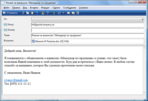 Каким должно быть первое письмо: