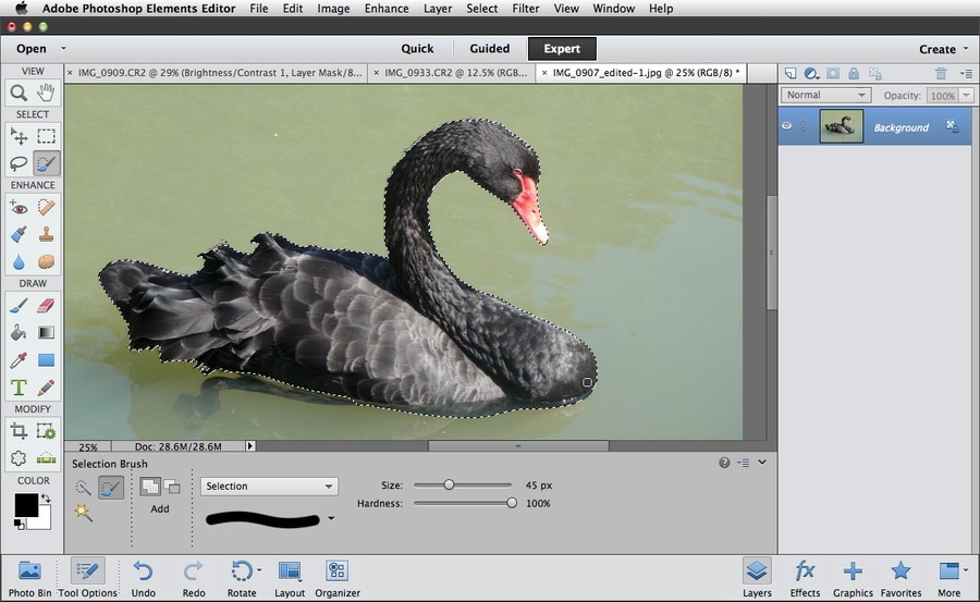 Чтобы увеличить изображение, воспользуйтесь инструментом «Масштаб» в нижней части панели инструментов. Выглядит это так:. Щелкните инструмент Zoom Tool, затем щелкните свое изображение. Вы также можете выбрать «Просмотр»> «Увеличить». Вы увидите увеличительное стекло со знаком (+) внутри. Каждый раз, когда вы нажимаете на изображение, инструмент «Масштаб» увеличивает его на 100%.