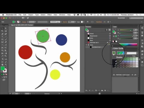 Еще два полезных совета. Допустим, я собираюсь сделать еще два круга. Я просто случайным образом смешаю цвета, я собираюсь… я немного осветлю его и выберу этот цвет. Этот цвет, и давайте выберем что-нибудь здесь. Что-то действительно очевидное, раскрасьте это. Вот так. Уродливые цвета, Дэн. Но вы можете сказать, что это еще не Swatches, верно? Потому что их не добавили. Поэтому, если вы хотите как бы сказать: «На самом деле я просто хочу иметь этот документ», возьмите все цвета, вставьте их в эту панель «Образцы», чтобы я мог их использовать, может быть, для импорта в другой документ. Итак, что вы можете сделать, так это зайти на панель «Образцы», у меня ничего не выбрано, и сказать: «Не могли бы вы добавить все цвета, которые используются в этом документе, на панель «Образцы»?» И обратите внимание, добавлено несколько новых образцов.