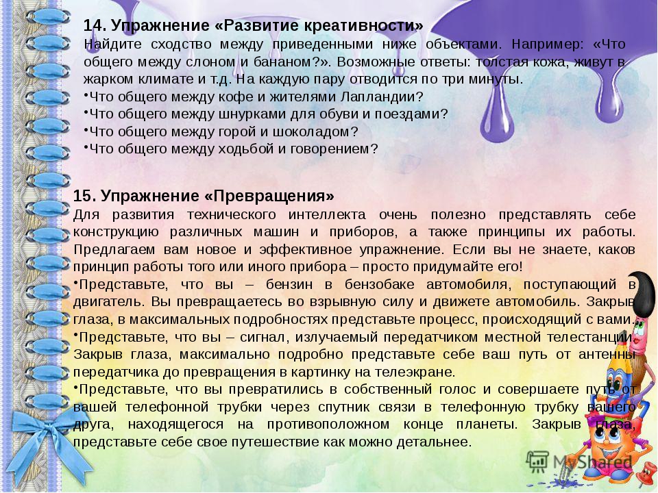 Тренировка правого полушария мозга неизбежно разовьет ваше воображение и поможет развить творческие способности и навыки творческого мышления. Ниже перечислены некоторые идеи для развития ваших творческих способностей, но предостережение: они принесут вам пользу только в том случае, если вы действительно хотите улучшить свои творческие способности!: