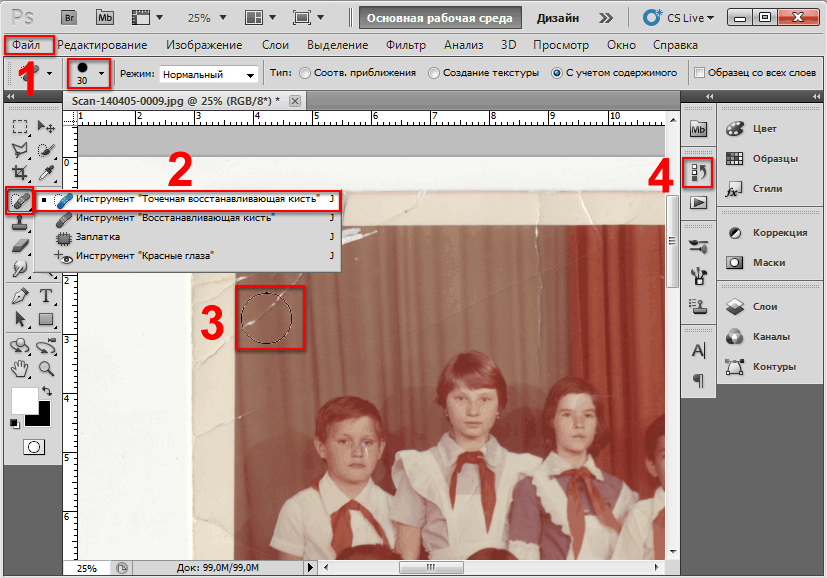 Реставрация фотографий в Фотошопе. Удаление царапин, пятен, дефектов.