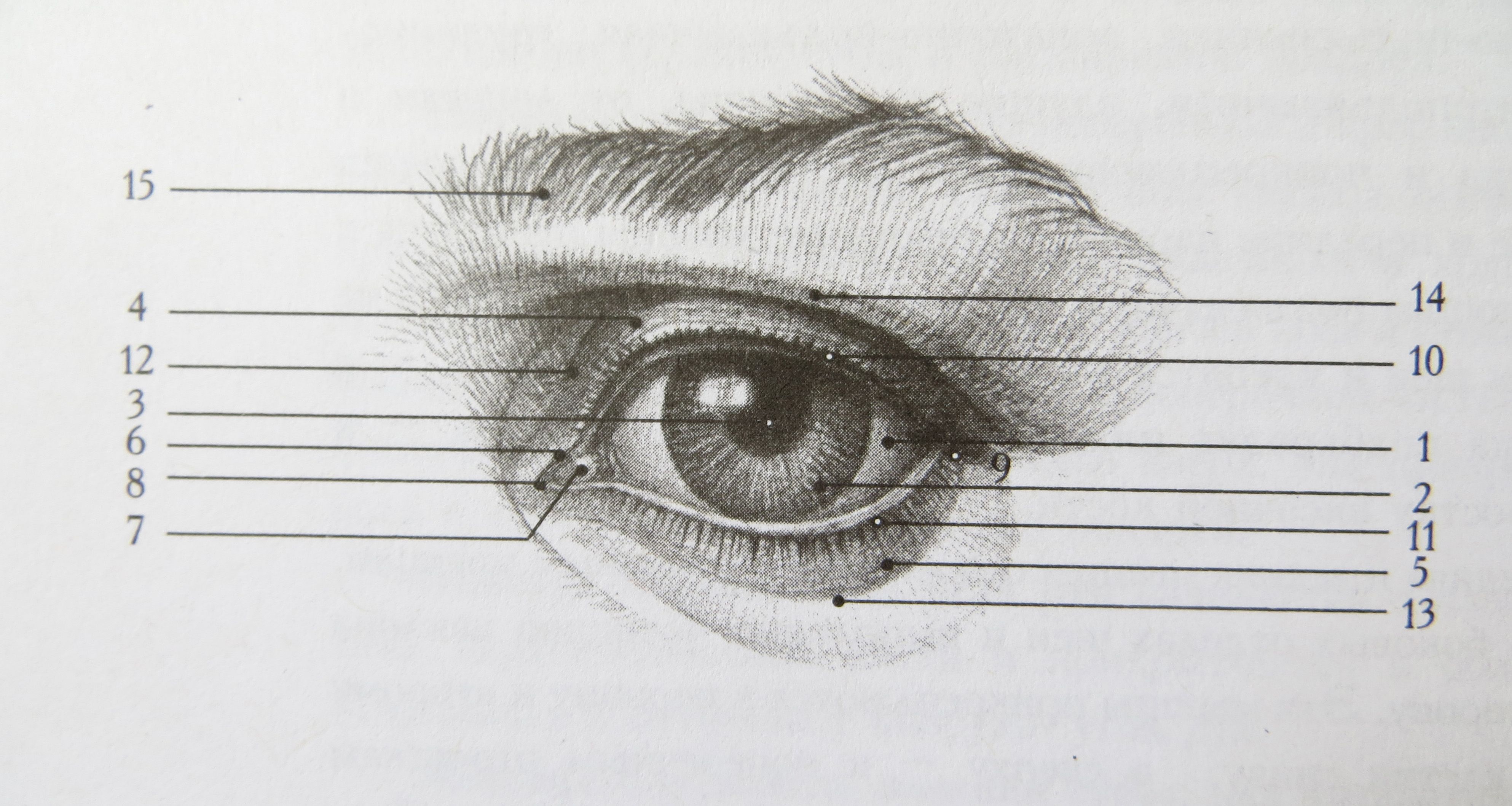 Если смотреть вверх (крайний левый глаз), нижнее веко изгибается вверх и закрывает небольшую часть глаз. Если смотреть вниз (два глаза справа), верхнее веко изгибается вниз и закрывает небольшую часть глаз.