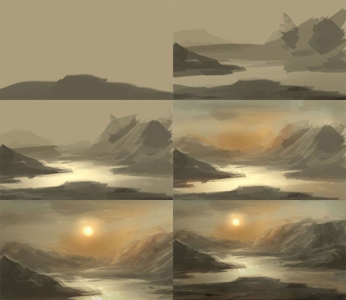 Изобразите песок: нарисуйте размытые тени и плавные переходы. Также можете подровнять облака.
